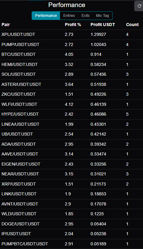 表现好的币值对有XPL\PUMP\BTC等。