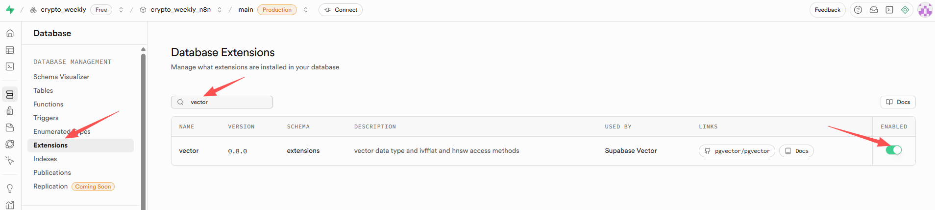 这里我选择启用 pgvector,用于未来 RAG 存储 X 数据 embedding。