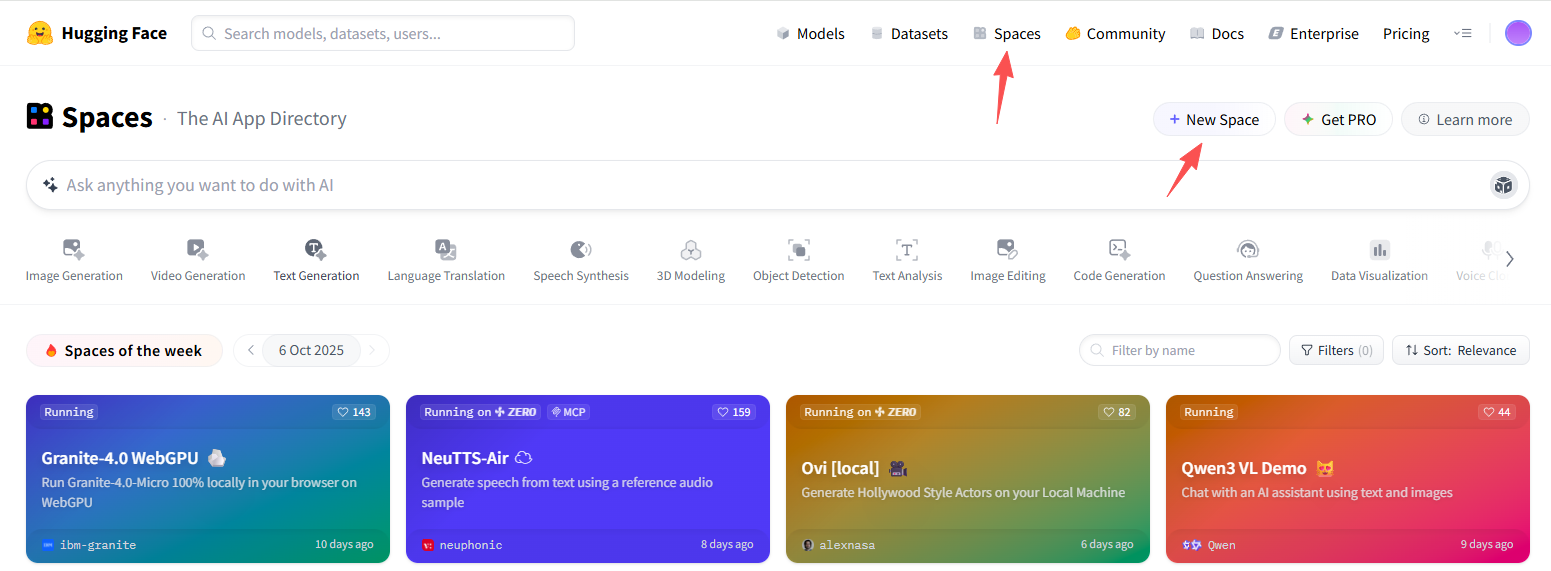 登录 Hugging Face,新建 Space(URL: https://huggingface.co/new-space )。