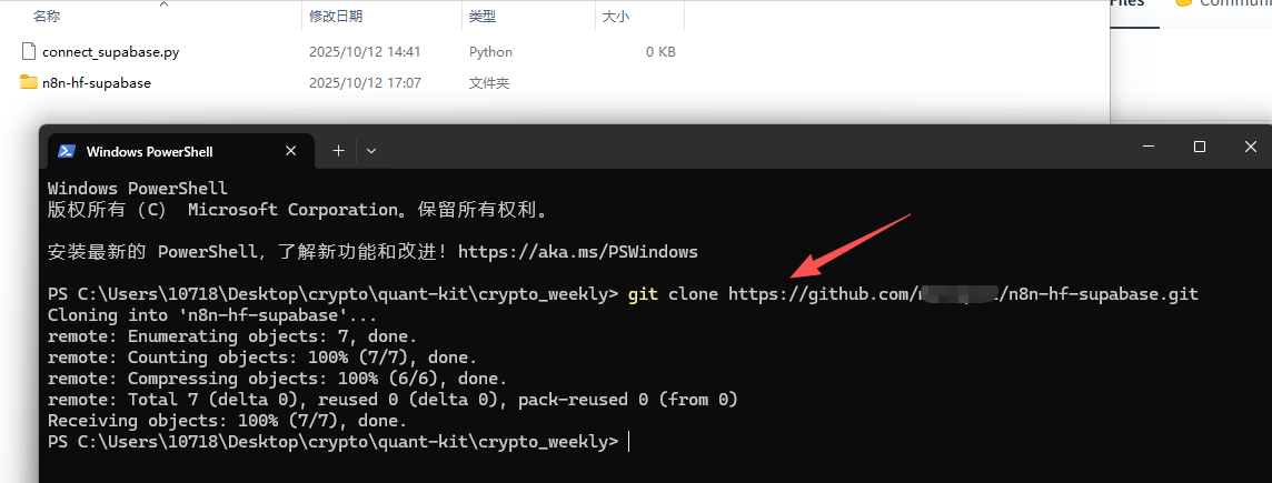 在本地目录,下载刚才新建的repo n8n-hf-supabase