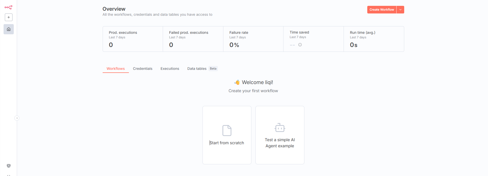 可以快速创建一个工作流,测试 n8n 核心功能。
