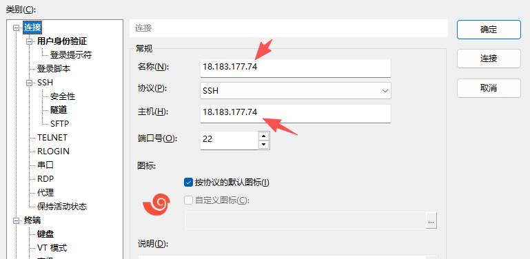 用XShell填写主机IP,端口22,用户ubuntu,认证用pem密钥(XShell > Tools > User Key Manager导入)。