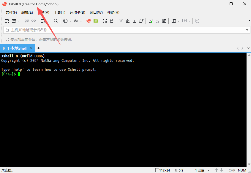Xshell已经可以正常使用了,能够看到显示的是“free for Home/School”,功能已经能够满足几乎所有个人使用的场景。