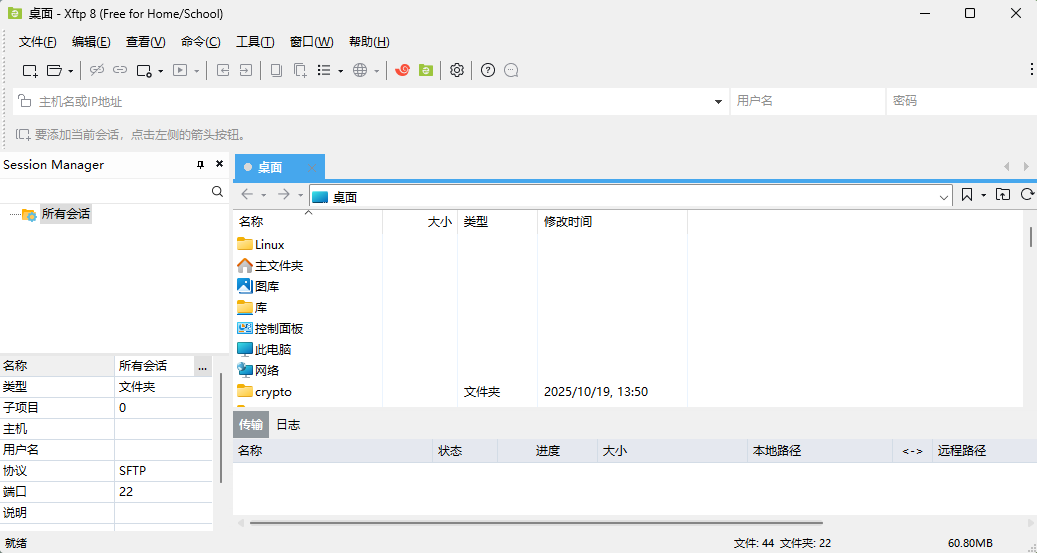 Xftp是SFTP/FTP客户端,支持拖拽上传/下载、文件夹同步、直接编辑远程文件、多窗口、FXP(服务器间直传)。可以与XShell无缝集成(从XShell直接打开XFTP传输文件),速度快、安全。
