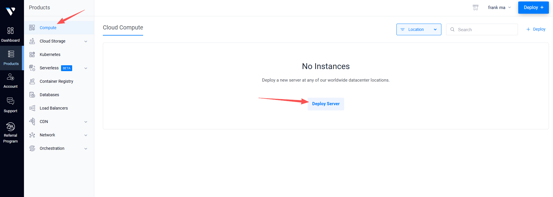 (1)登录后点击左侧 Deploy 或首页 + Deploy Server。