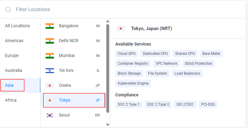 - 选择 Asia > Tokyo(日本东京,低延迟最低)。