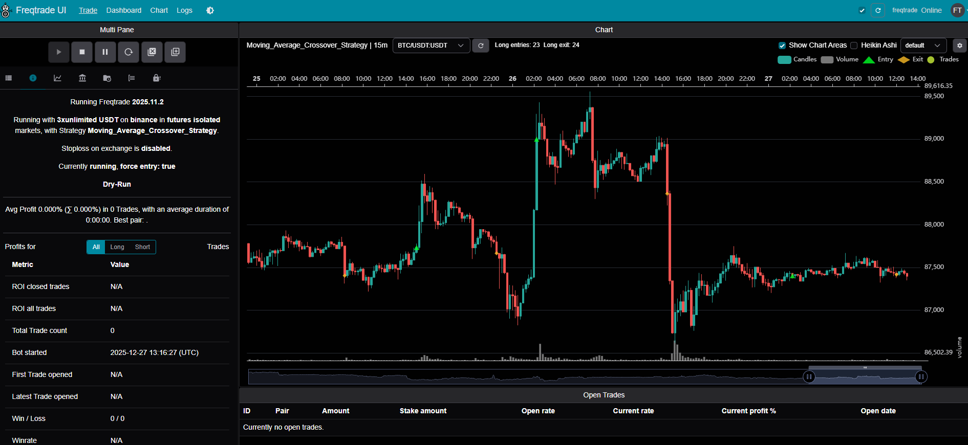 修改docker-compose.yml中的策略名为Moving_Average_Crossover_Strategy并启动。