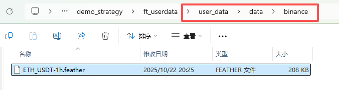 下载后,能够在./user_data/data/binance/目录下看到对应的数据文件。