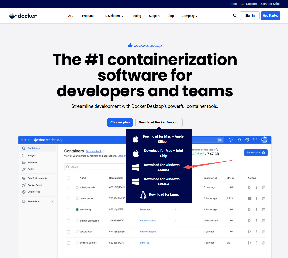 官方下载地址 https://www.docker.com/products/docker-desktop/