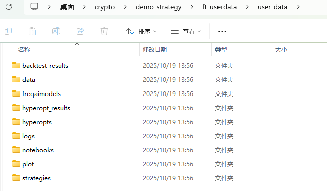 | strategies/ | 存放自定义策略脚本(Python 文件)。Freqtrade 会从这里加载策略类(如 MyStrategy.py),用于实盘和回测。 |