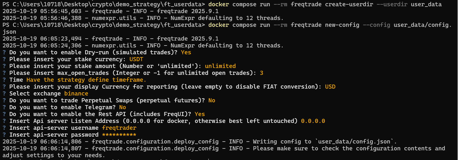 docker compose run --rm freqtrade new-config --config user_data/config.json