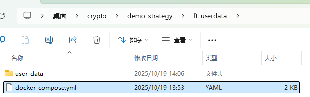 拉取的docker-compose.yml在 C:\Users\10718\Desktop\crypto\demo_strategy\ft_userdata 目录下,这里的信息可以先简单了解一下,后续也会用到。