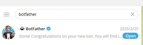 打开 Telegram,搜索 @BotFather。