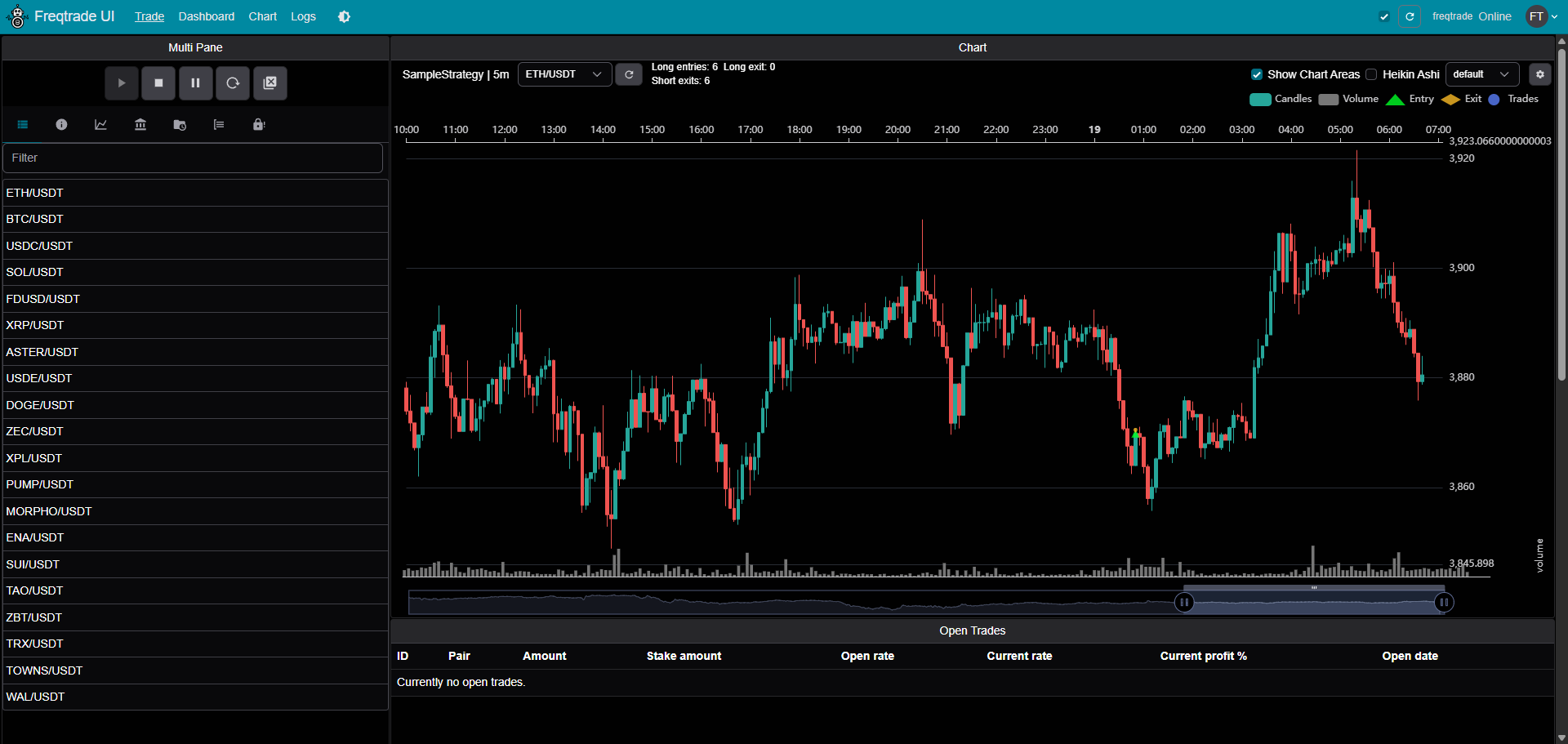 输入密码登录后,就能看到freqtrade的UI界面。