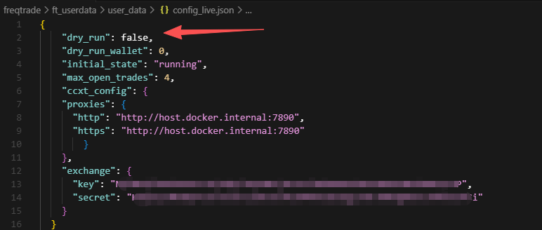 在这个专门用来live trade的配置文件中,存放关键的交易所API信息,避免意外上传到github或者误分享。