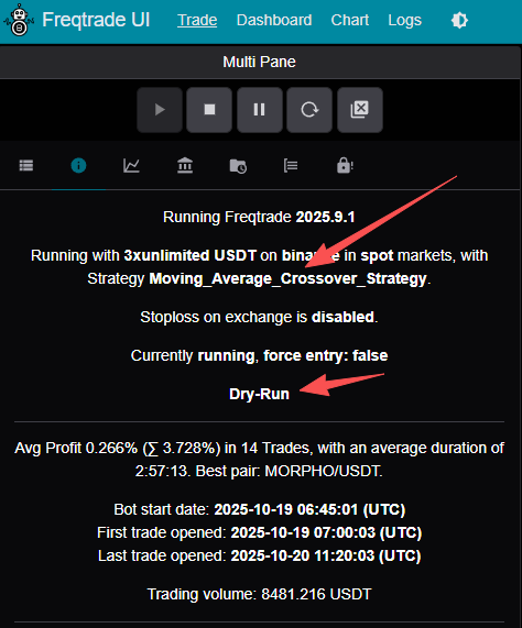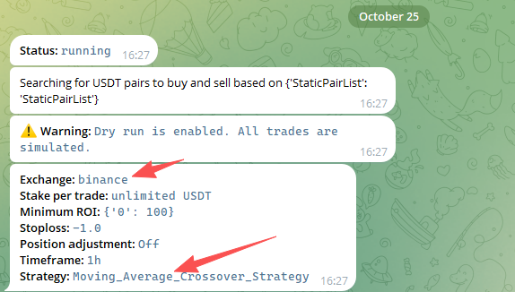 dry-run模式下,会使用真实的实时市场数据,按照配置的策略逻辑,在内部模拟下单与持仓,和live trade的唯一区别是不会真正调用交易所API下单。