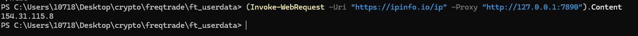 # 代理情况下查询当前的ip(Invoke-WebRequest -Uri "[https://ipinfo.io/ip](https://ipinfo.io/ip)" -Proxy "[http://127.0.0.1:7890](http://127.0.0.1:7890)").Content